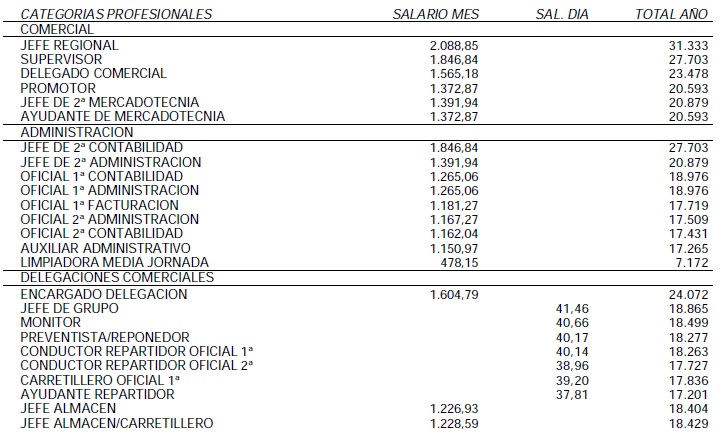 Artículo 18. Formación del Personal Por iniciativa de la Empresa o a propuesta de los trabajadores, la Dirección podrá organizar cursillos o seminarios tendentes a mejorar los conocimientos profesionales del personal para el desarrollo de su trabajo. Asimismo, será parte de la responsabilidad del puesto de trabajo de cada trabajador, realizar cursillos para estar al corriente de las nuevas técnicas que ayuden al ejercicio de sus funciones. La asistencia de cursillos de formación profesional, serán tenidos en cuenta en la valoración del historial del trabajador para caso de promociones. Igualmente, se reconoce el derecho del trabajador a concurrir sin pérdida de retribución económica a los exámenes para la obtención del carnet de conducir y a las diligencias necesarias para la renovación del mismo; cuando la posesión del carnet de conducir se relacione con los cometidos propios del puesto de trabajo respectivo. Artículo 19. Escalafón La Empresa publicará el escalafón para conocimiento del personal en el tablón de anuncios del Centro de Trabajo y en el período comprendido del 15 de eneroal 15 de febrero de cada año y en referencia del 01 de enero al 31 de diciembre del año anterior. El escalafón se referirá a todos los trabajadores que han permanecido en el mismo, dentro de dicho período y que estén sujetos al presente convenio. Los trabajadores que se consideren perjudicados en el escalafón, tendrán un máximo de 15 días para reclamar, a contar a partir del día de vencimiento del período de su publicación. Esta reclamación se realizará a través de un escrito dirigido al Comité de Empresa, quien lo presentará a la Dirección de la Empresa. Los datos que han de figurar serán los siguientes: ·Nombre y apellidos del trabajador. ·Fecha de ingreso en la Empresa. ·Categoría profesional. ·Antigüedad real en meses y todo ello por orden de antigüedad en el Centro de Trabajo. Artículo 20. Ropa de Trabajo La Empresa queda obligada a facilitar a los trabajadores que realicen operaciones manuales, las prendas de trabajo de uso obligatorio y específico para cada actividad. Se entregarán dos mudas de verano y dos de invierno antes del 30 de Abril y 30 de Septiembre respectivamente, obligándose todo el personal a utilizar la ropa de la última entrega. Artículo 21. Privación del Permiso de Conducir En caso de privación del permiso de conducir a cualquier trabajador en la prestación de servicios a la Empresa, ésta ocupará al interesado en un puesto similar, manteniéndole el salario que viniera disfrutando, salvo en el supuesto de embriaguez recogido en resolución judicial firme, en cuyo caso la relación laboral se suspenderá por el tiempo que dure la privación del carnet de conducir, con derecho a ocupar automáticamente el puesto de trabajo anteriormente desempeñado al obtener nuevamente el carnet de conducir. Artículo 22. Inviolabilidad La Empresa no podrá realizar registros en la persona del trabajador ni en sus taquillas ni demás efectos personales. Capítulo IV. Jornada De Trabajo, Descanso, Vacaciones, Licencias y Calendario Laboral Artículo 23. Jornada. La jornada anual de trabajo durante la vigencia de este convenio será de 1.784 horas de trabajo efectivo, salvo norma legal más favorable, con una jornada de trabajo semanal de 40 horas a razón de 8 horas diarias. Se seguirá distribuyendo de lunes a viernes, a excepción de aquellos trabajadores que tengan una distribución distinta estipulada en su contrato de trabajo, de acuerdo con lo estipulado en el artículo siguiente. A tal efecto, se respetarán las condiciones de descanso por bocadillo, realizándose en tres turnos rotativos, computando dicho periodo como de trabajo efectivo. En materia de descanso por bocadillo se establece expresamente que dicho período, que se computa como de trabajo efectivo, es, para el personal de Planta que trabaja en régimen de jornada continuada, de 30 minutos diarios, siendo para el resto de personal del Centro de Trabajo de la Planta Embotelladora y que trabajan a jornada partida, de 15 minutos diarios. Artículo 23 Bis.- Sistema De Campaña Descripción de las condiciones del sistema: 1. La adscripción a este sistema de trabajo será de carácter voluntario, debiendo manifestar esta adscripción todas las secciones de la fábrica. 2. La duración máxima de cada ciclo de trabajo en este sistema será de 6 meses. 3. El número máximo de trabajadores necesarios para completar cada ciclo será en función de las necesidades de producción. 4. Por la prestación de este servicio, cada trabajador percibirá la cantidad de 25,27 euros por sábado y 25,27 euros por domingo. 5. Se trabajarán los festivos que estén comprendidos dentro de la campaña, siempre que exista riesgo de rotura de stock. En cualquier caso, por cada festivo trabajado, cada persona percibirá un plus de festividad de 34,02 euros más su día de descanso compensatorio, o alternativa y excluyentemente 2 días de descanso por cada festivo trabajado, a disfrutar dentro de los periodos vacacionales. 6. En el supuesto de que no se obtenga el número de trabajadores necesarios para completar la lista, la empresa la completará con los trabajadores que tienen contrato de lunes a domingo por orden de antigüedad. Cuando se complete ese ciclo y la empresa necesite hacer un nuevo llamamiento, y si se produjese la situación descrita en el párrafo anterior, la empresa deberá actuar de la misma forma, con la salvedad de que no podrá volver a llamar para este sistema a los trabajadores que convocó forzosamente en el ciclo anterior, por lo cual deberá continuar con el siguiente de la lista. La empresa no podrá obligar a repetir nuevo ciclo a un trabajador de forma forzosa, hasta que todos hayan completado el mismo número de ciclos. 7. Para el caso de que el número de personas apuntadas para la realización de un ciclo sea mayor del necesario, las personas cuyo servicio no sea nece